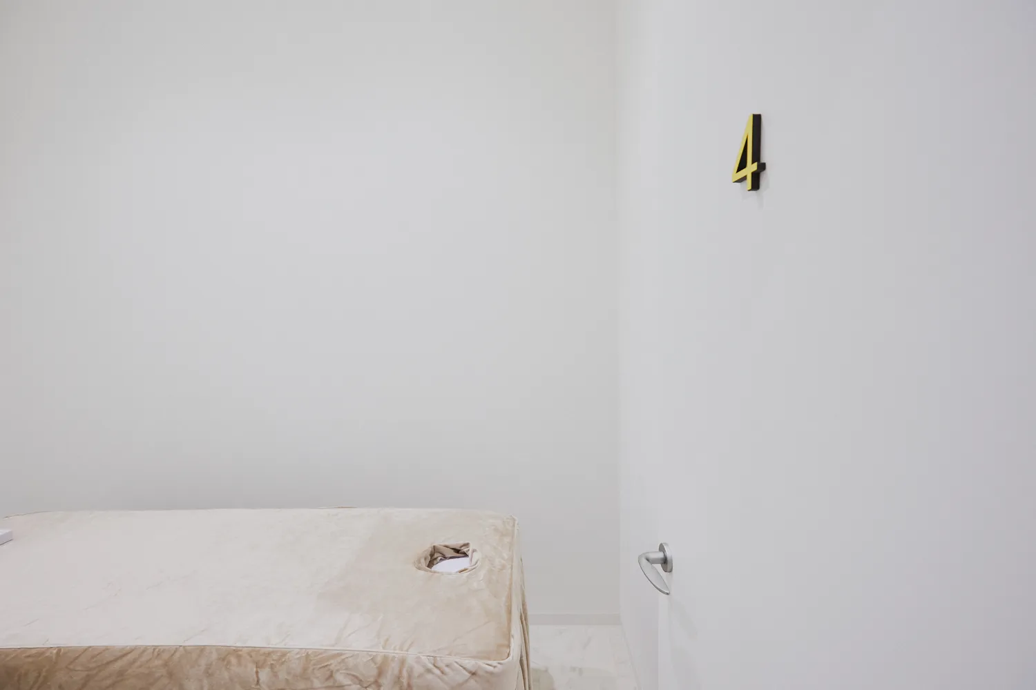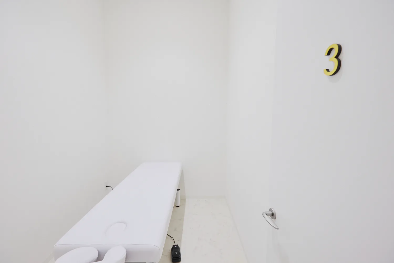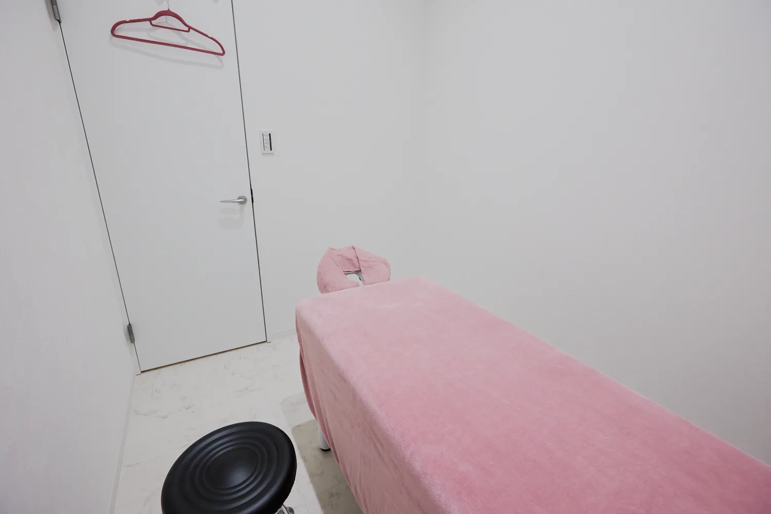 広さ:6畳/設備:施術ベッド、タオルウォーマー、収納棚など